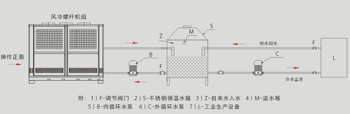 應用環(huán)境: 主要為模具、光纖光纜水槽、工業(yè)爐、制藥機械、點焊機等行業(yè)提供循環(huán)冷卻水,能夠有效地控制和調(diào)節(jié)冷卻水溫度(3℃~35℃),讓機械設備產(chǎn)生熱量的部分在運轉過程中能夠保持所需要的恒定溫度冷卻設備產(chǎn)生的高溫。從而大大提高機械設備的使用壽命和工作效率! 一、風冷型冷水循環(huán)機也叫風冷式冷水機組,主要區(qū)別就是冷水循環(huán)機不帶水箱(水箱外置),通過板式換熱器或者殼管式換熱器來給水箱內(nèi)的水循環(huán)降溫。 產(chǎn)品特點Features: 1、采用國際最先進的渦旋式或活塞式壓縮機,電器及制冷系統(tǒng)原器件全部為世界著名品牌; 2、冷卻水泵及管路系統(tǒng)全部采用不銹鋼材質,確保水質更潔凈,使用壽命更長久、制冷效果更穩(wěn)定; 3、風冷冷凝器全部采用進口風機及大風量低噪音軸流設計,噪音更低、換熱效率更高; 4、風冷系列無需配置冷卻水塔及冷卻水泵,安裝簡單,移動方便,適合生產(chǎn)場地比較緊缺的環(huán)境使用; 5、機組采用進口高精度電子顯示器,內(nèi)置P.I.D 自動演算功能,啟動延時功能,控溫精度在±0.5℃范圍內(nèi),且控制溫度范圍在3℃~40℃之間; 6、為保證使用安全,機組內(nèi)置漏電保護器、相位保護、過載保護、電流保護;系統(tǒng)安裝了高、低壓保護傳感器,為防止缺水或循環(huán)水系統(tǒng)內(nèi)部結冰,機組安裝了流量開關和低液位保護裝置。